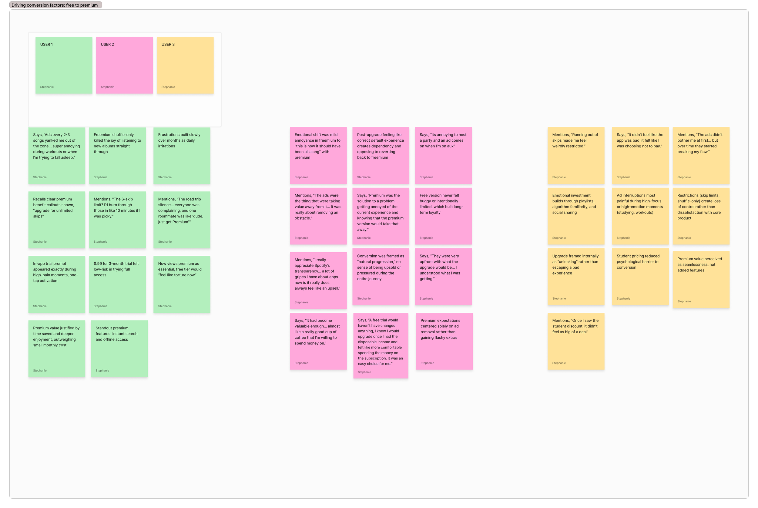 I conducted surveys and moderated, think-aloud user interviews to identify key drivers of premium conversion.