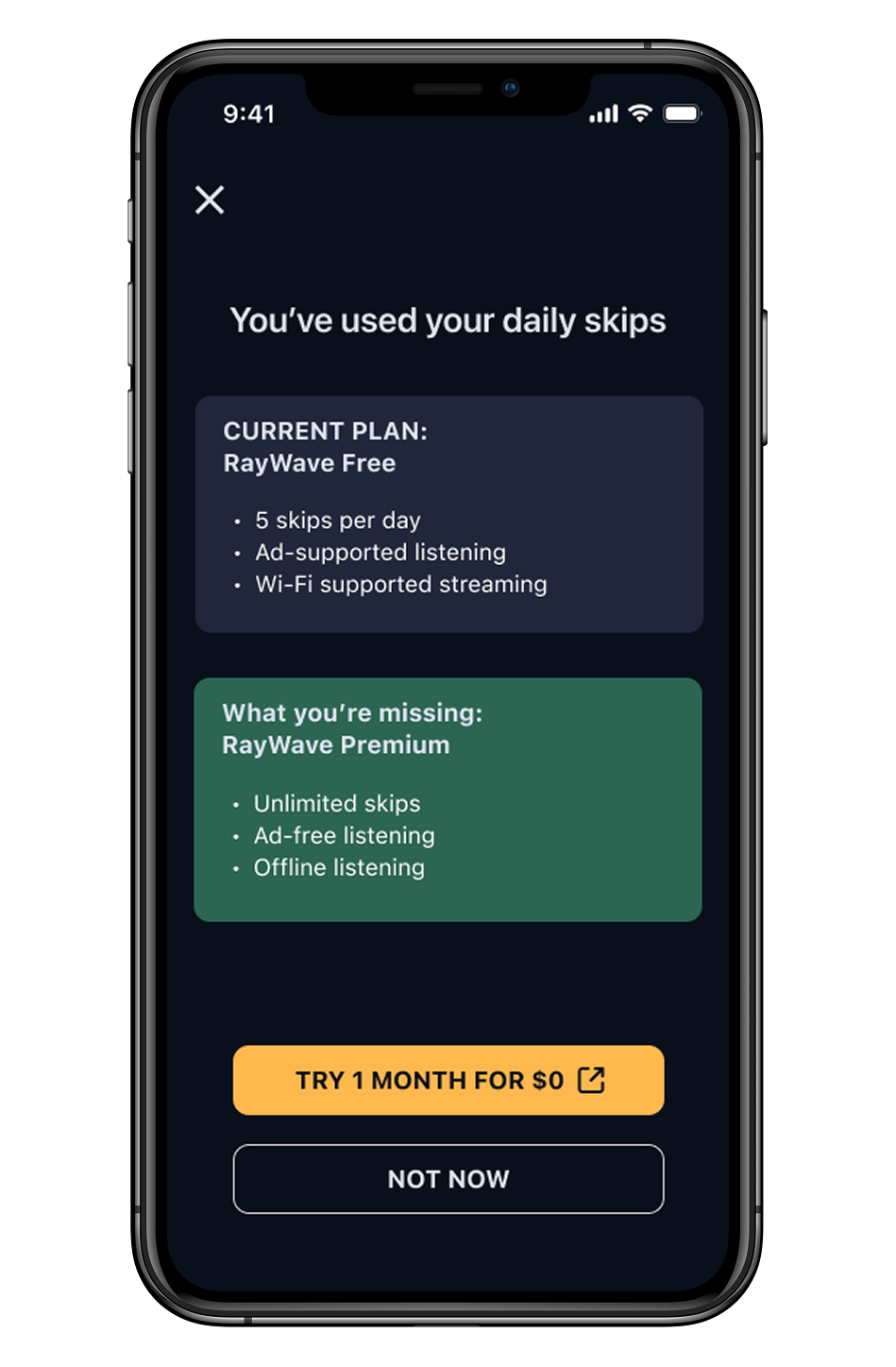 Modals triggered by skip limits that highlight premium value at moment of frustration
